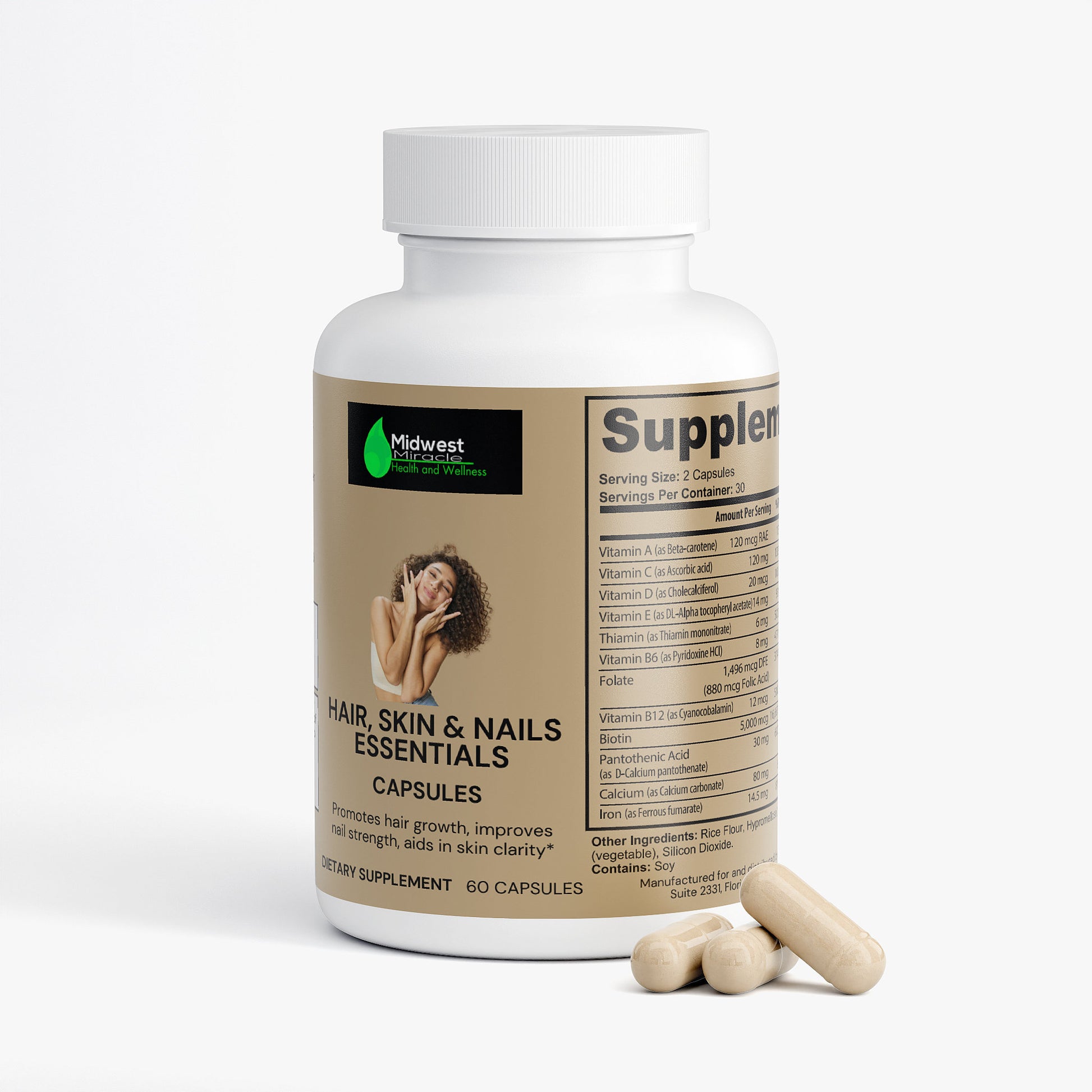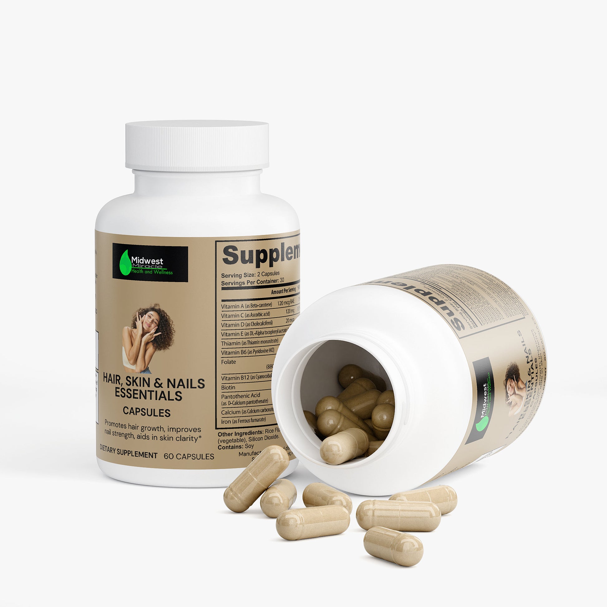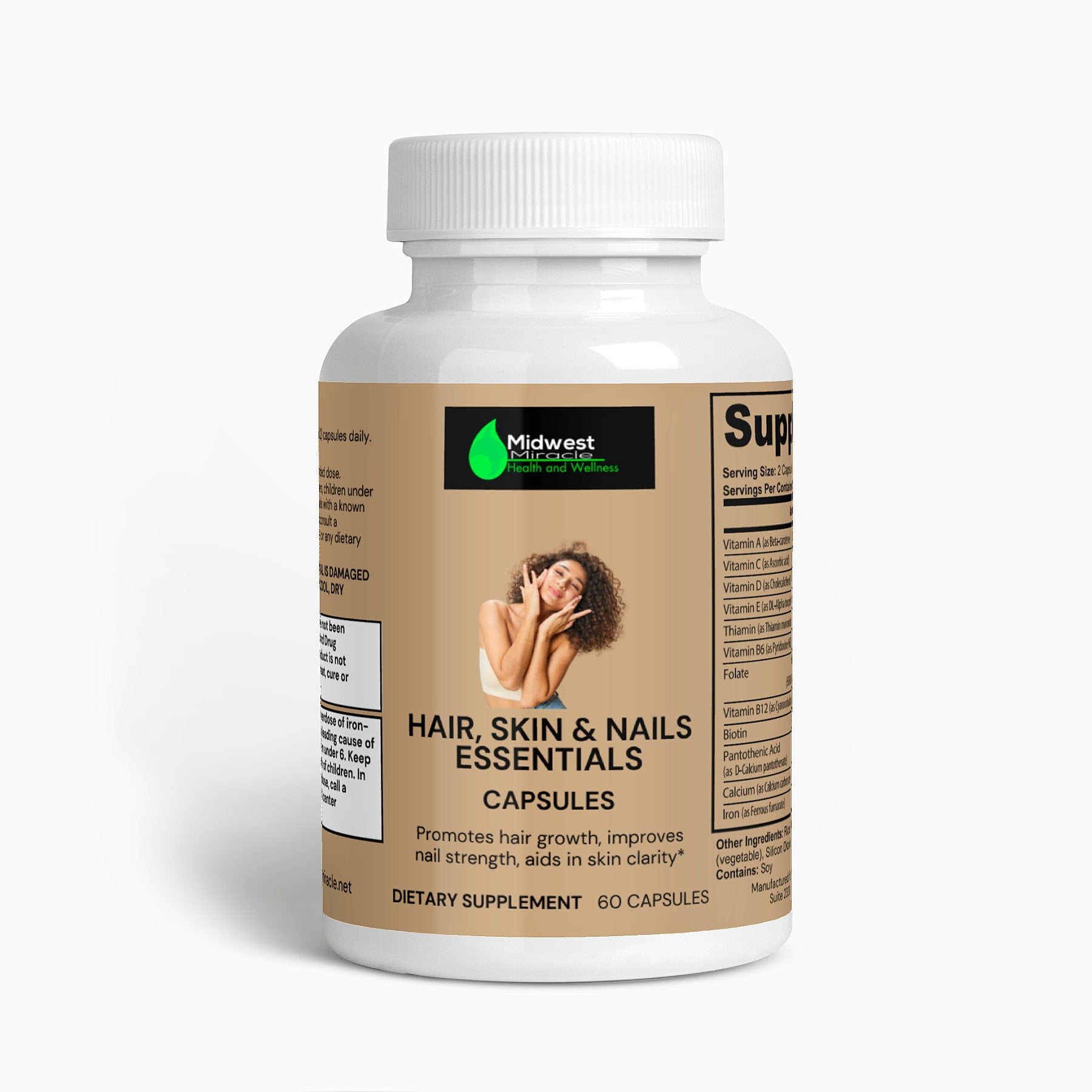 Our Hair, Skin, and Nails Essentials supplement is made to give you that natural glow. In combination, Vitamin B6, Folate, and Biotin work together to maintain elastin in the hair, skin, and nails. Elastin is a major component of body tissues, helping them function correctly.*