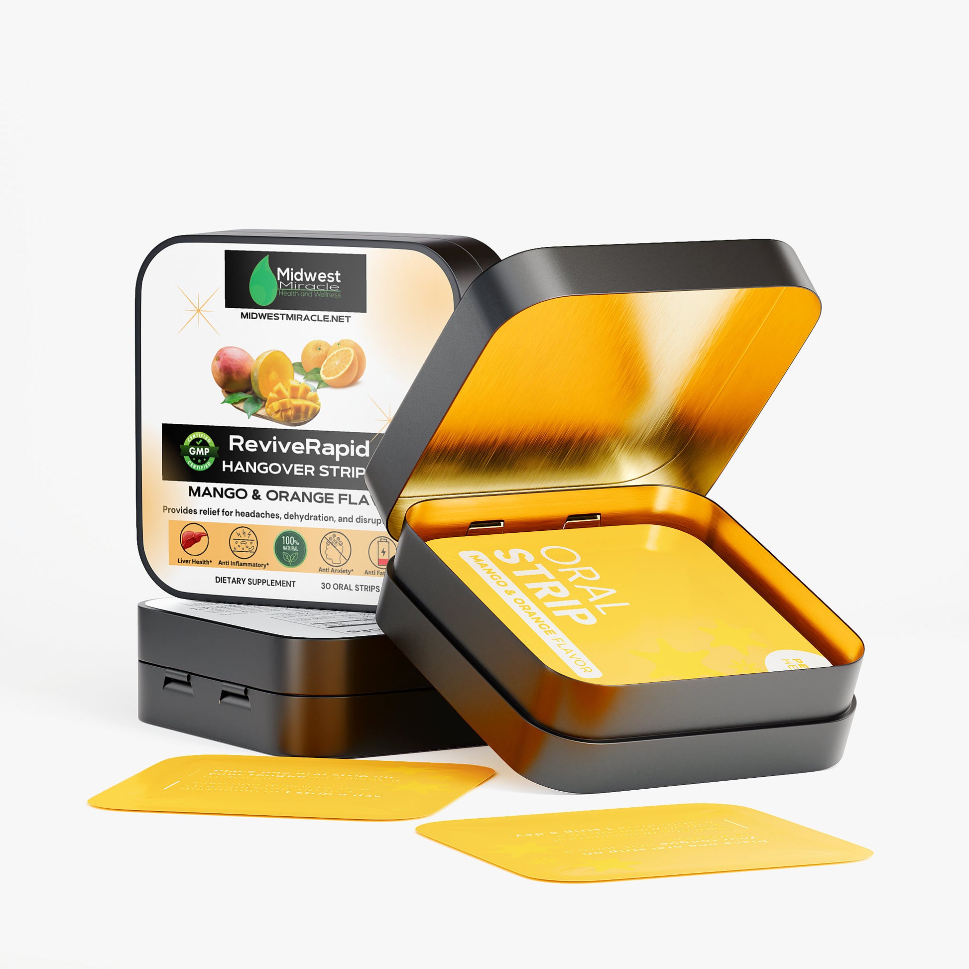Crafted with Ayurvedic ingredients, ReviveRapid Hangover Strips are designed to help your body manage the after-effects of a night out. For optimal results, take one before your event to support help with: